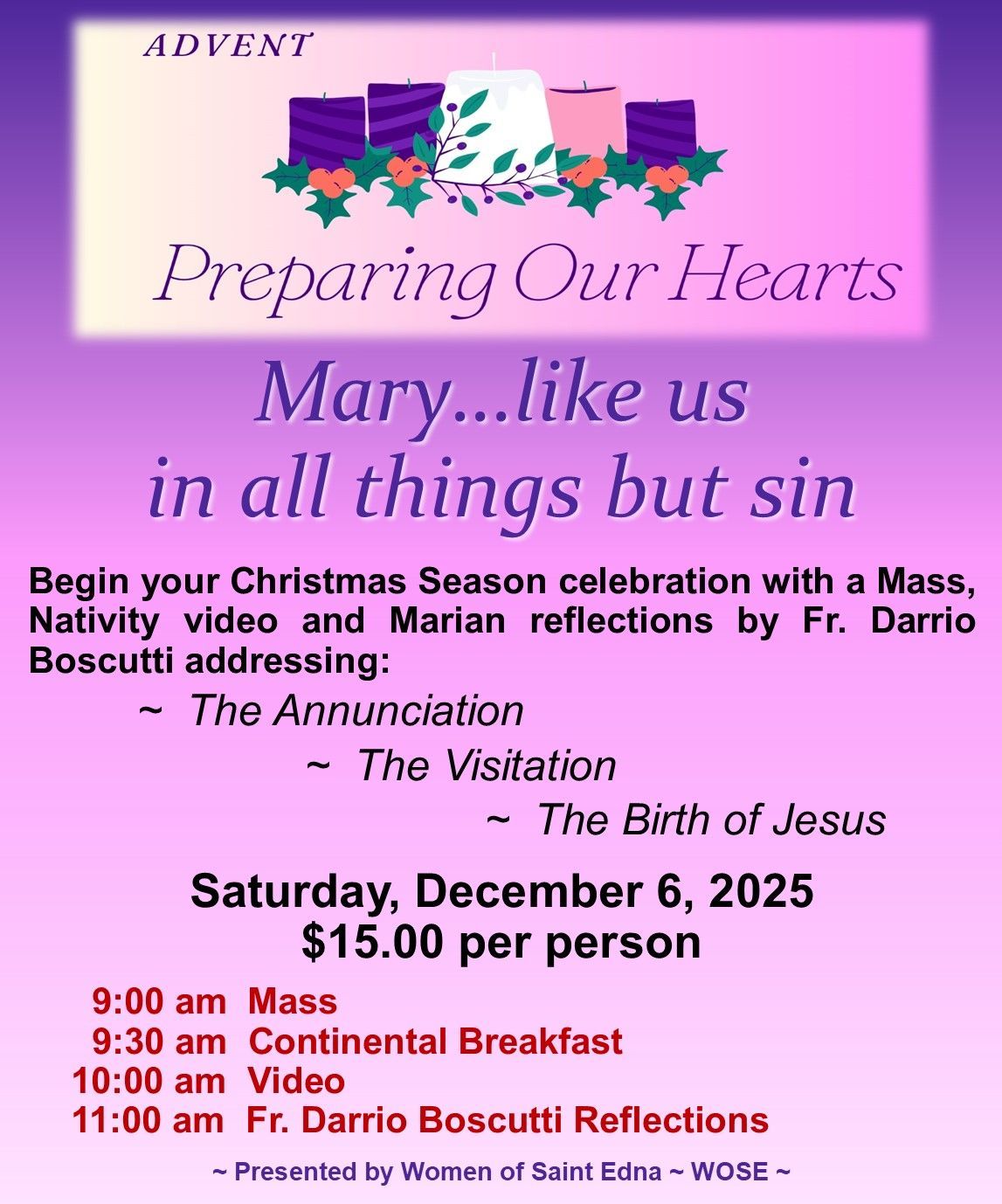 Our new Mission Statement encompasses all of the above and should be an inspiration for parishioners to deepen their commitment in making St. Edna Parish a community where all are welcomed and strengthened in their faith.
