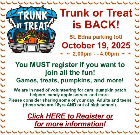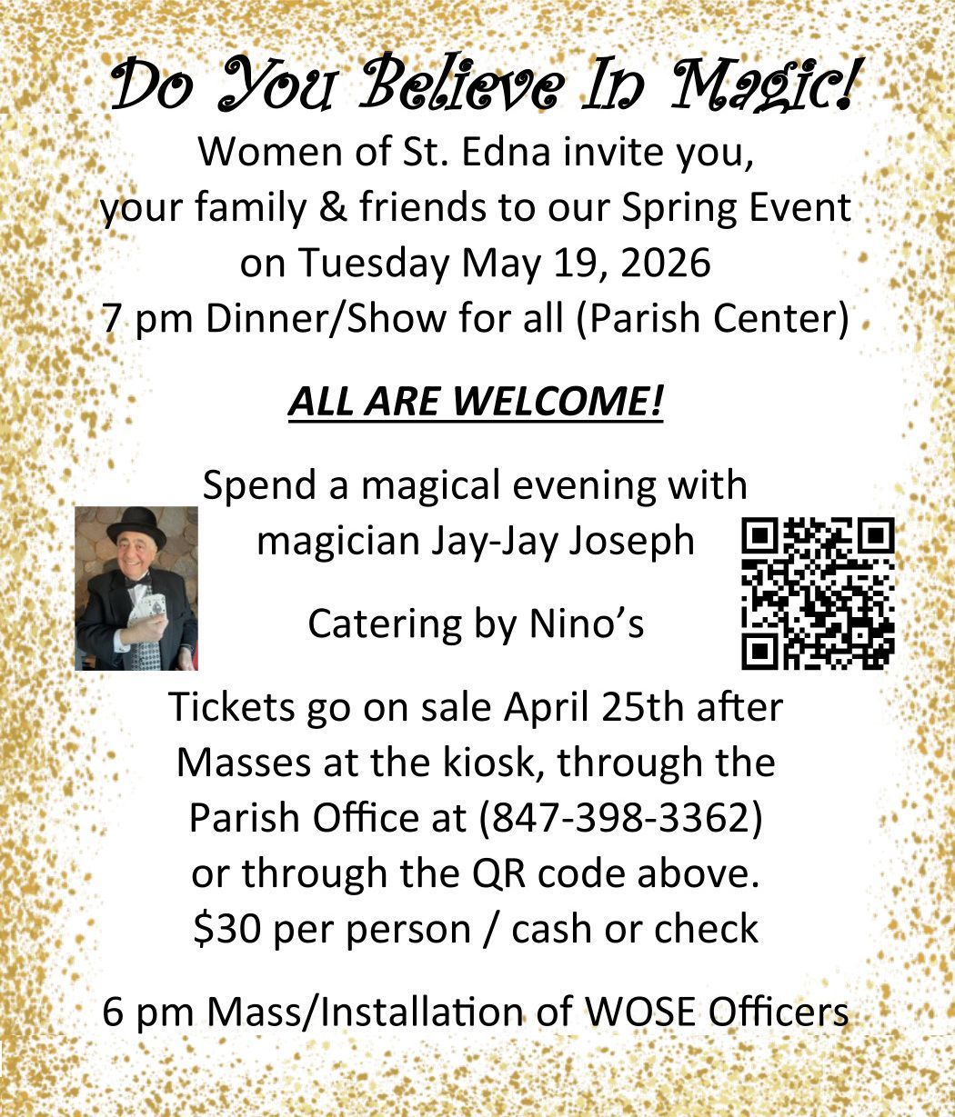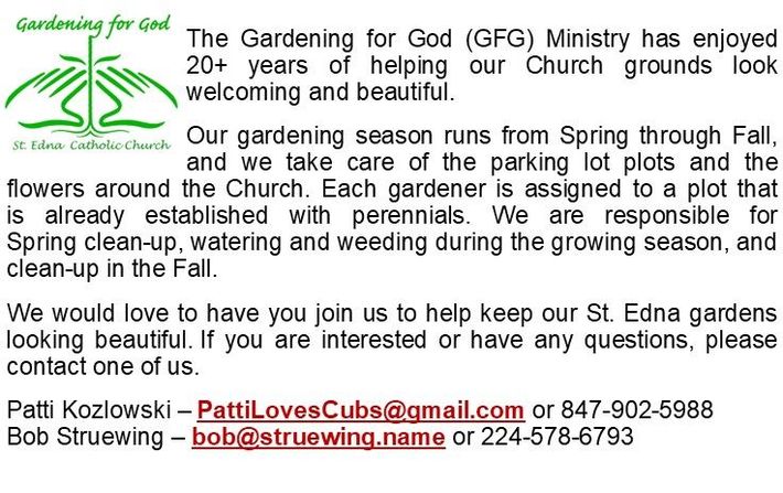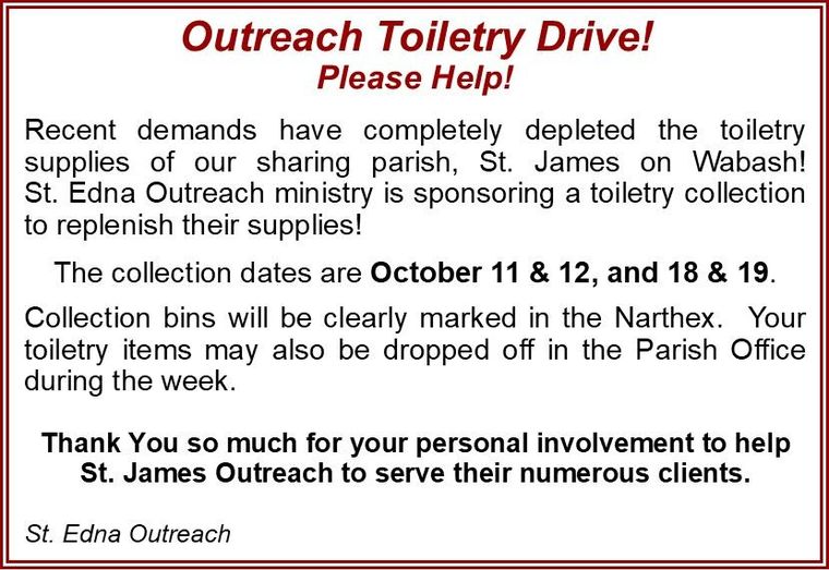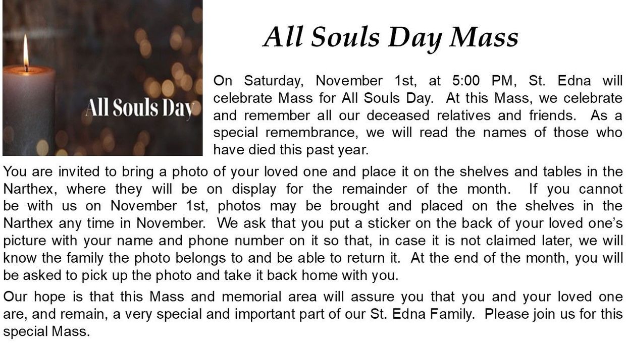 Our new Mission Statement encompasses all of the above and should be an inspiration for parishioners to deepen their commitment in making St. Edna Parish a community where all are welcomed and strengthened in their faith.