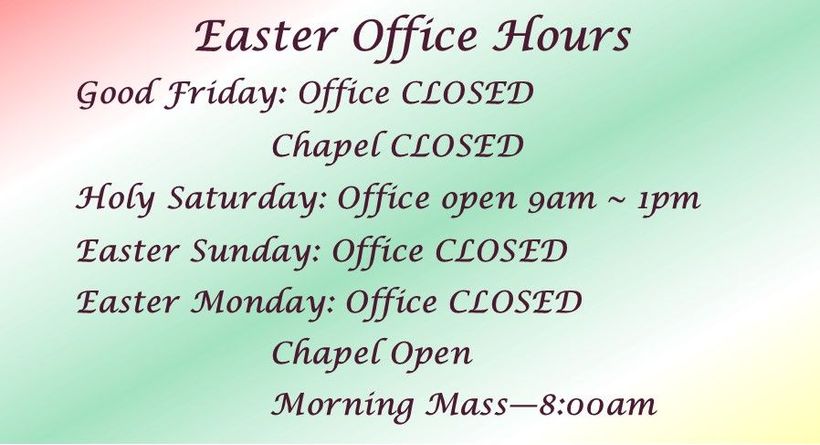 Sunday 7:30 am, 9:30 am, 11:30 am, 5:00pm