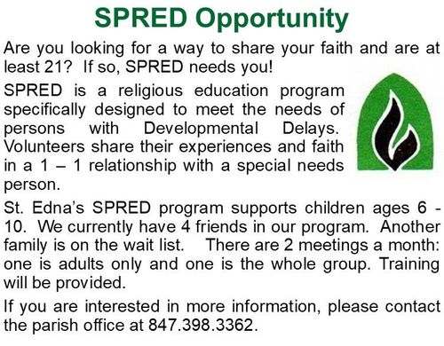 In the spirit of the Renew My Church initiative, the Parish Pastoral Council has collaborated and finalized a new St. Edna Parish Mission Statement (which now graces our Bulletin cover):