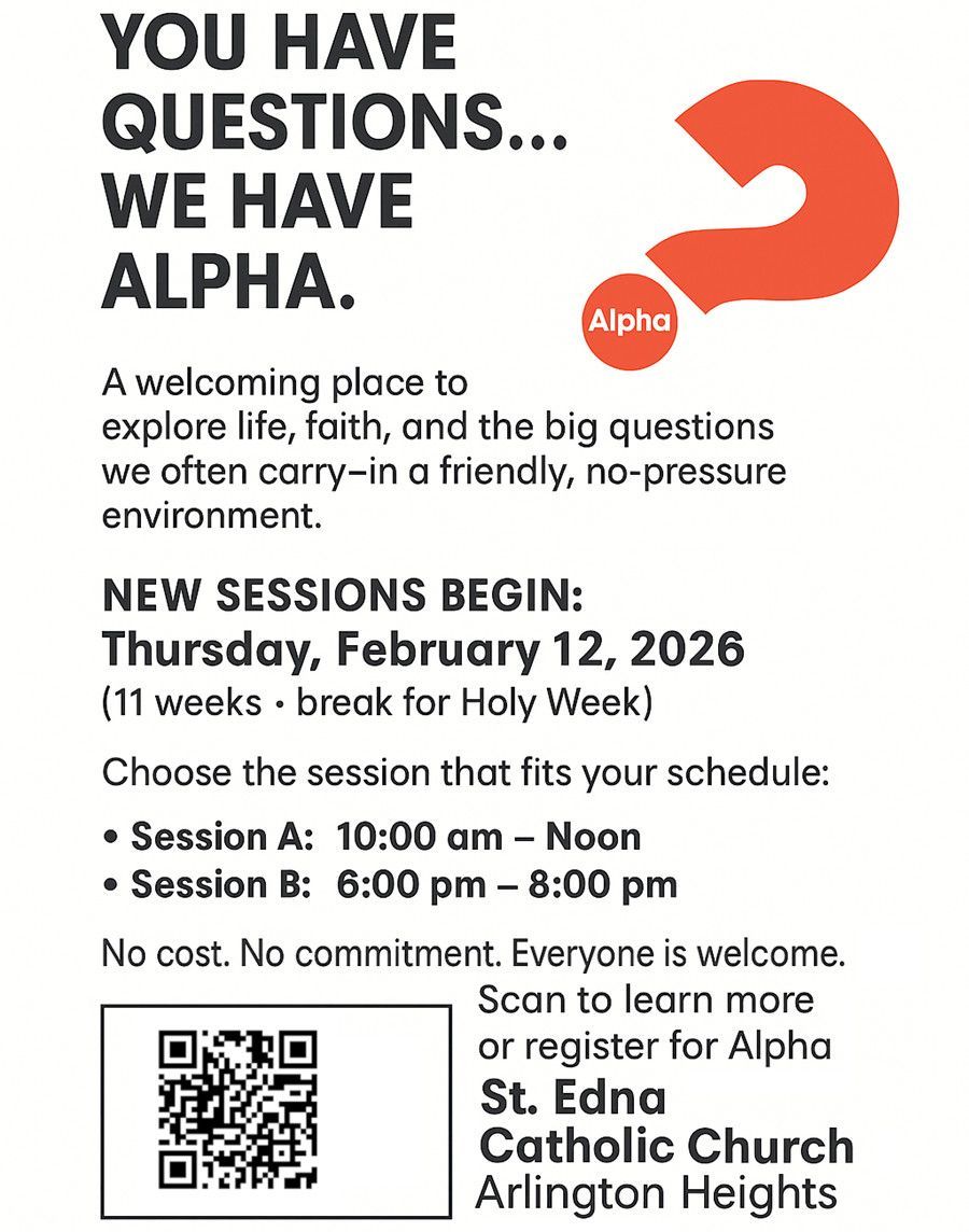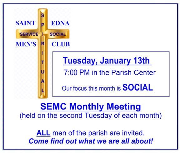 For those who would like to pray before the Blessed Sacrament, please know that our original 1965 St. Edna Tabernacle (with the Blessed Sacrament inside) is positioned in the NORTH window of the Holy Family Shrine niche. Feel free, day or night, to stop for a while and pray. We also have a framed Image of Our Lady of Guadalupe and a beautiful Blessed Mother statue positioned to the left and to the right of the Narthex window Tabernacle.
