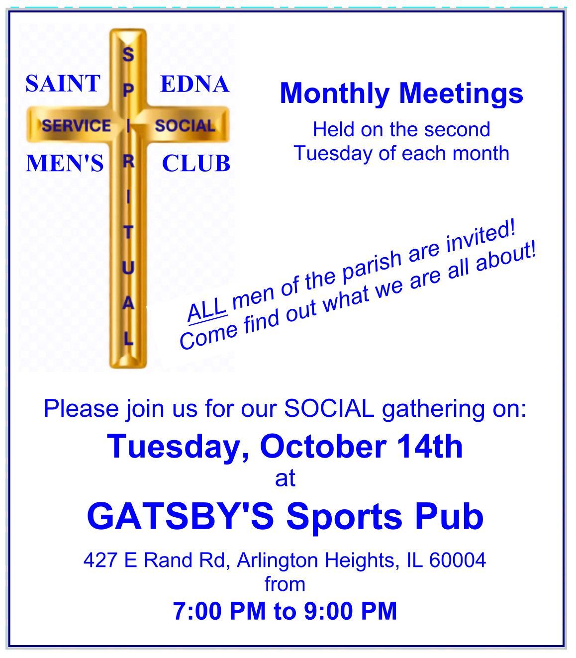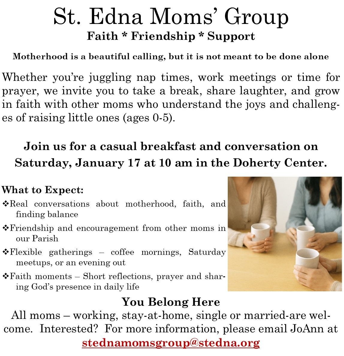 Come and enjoy where breakfast and fellowship are served every Tuesday, after the 8:00 am Mass. Served in the Doherty Center.