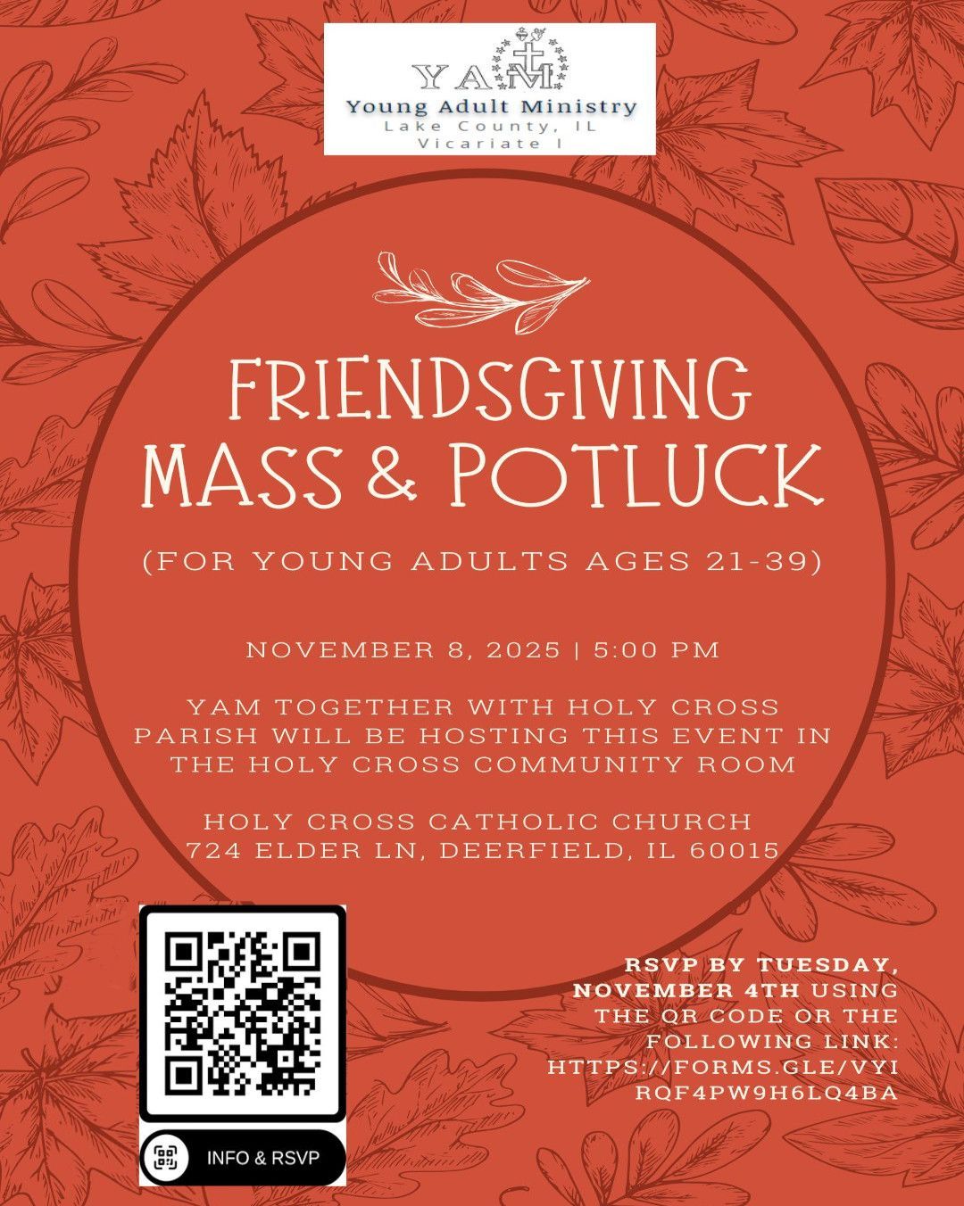 We meet monthly for spiritual and social events. We are for adults ages 29–45. Watch the newsletter & bulletin for our events.