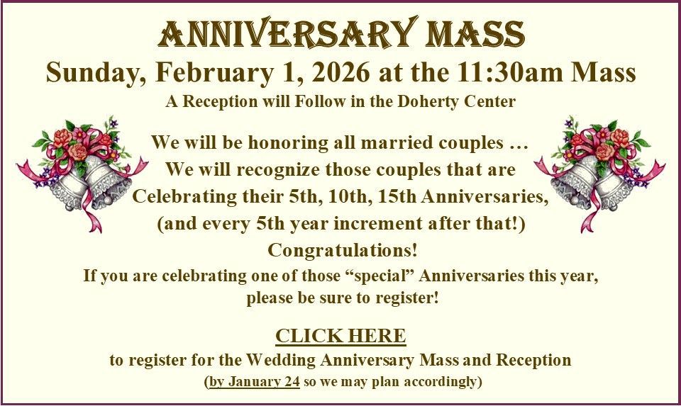 Our PRAYER BASKET is available in the Center Aisle. Feel free to drop your prayer requests in it before Mass. The basket is brought to the Altar at Offertory Time, along with the Gifts of Bread and Wine.